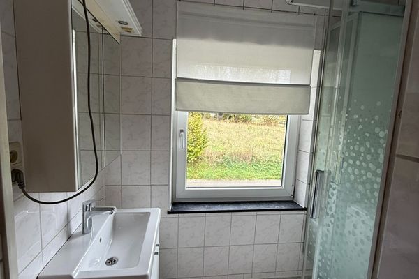 Trap naar 1ste verdieping: 3x slaapkamers - badkamer met lavabo en douche.
