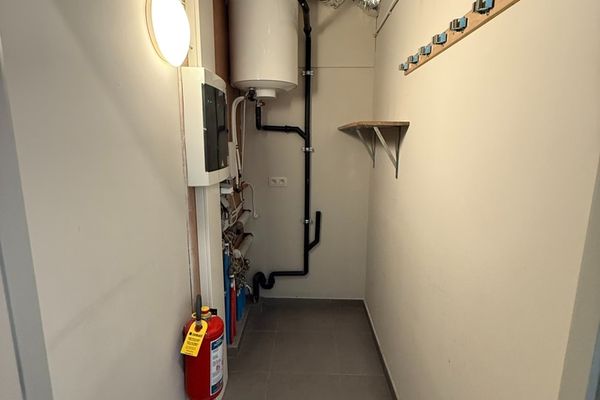 Berging/wasplaats - open geïnstalleerde keuken met leefruimte en toegang naar het terras met zicht op de binnentuin - slaapkamer met aansluitend de badkamer.